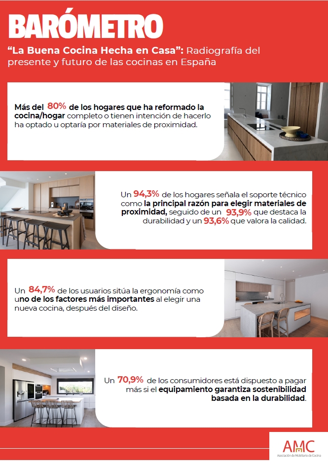 Por todo ello, desde AMC consideran que queda claro que “los hogares ya no miran solo el precio o el diseño puntual, sino el conjunto de la experiencia: origen de los materiales, soporte técnico, vida útil y comodidad en el uso diario. Así, la Buena Cocina Hecha en Casa empieza por elegir materiales de proximidad bien diseñados y duraderos. Es una decisión que combina estética, sostenibilidad y bienestar en el hogar”.