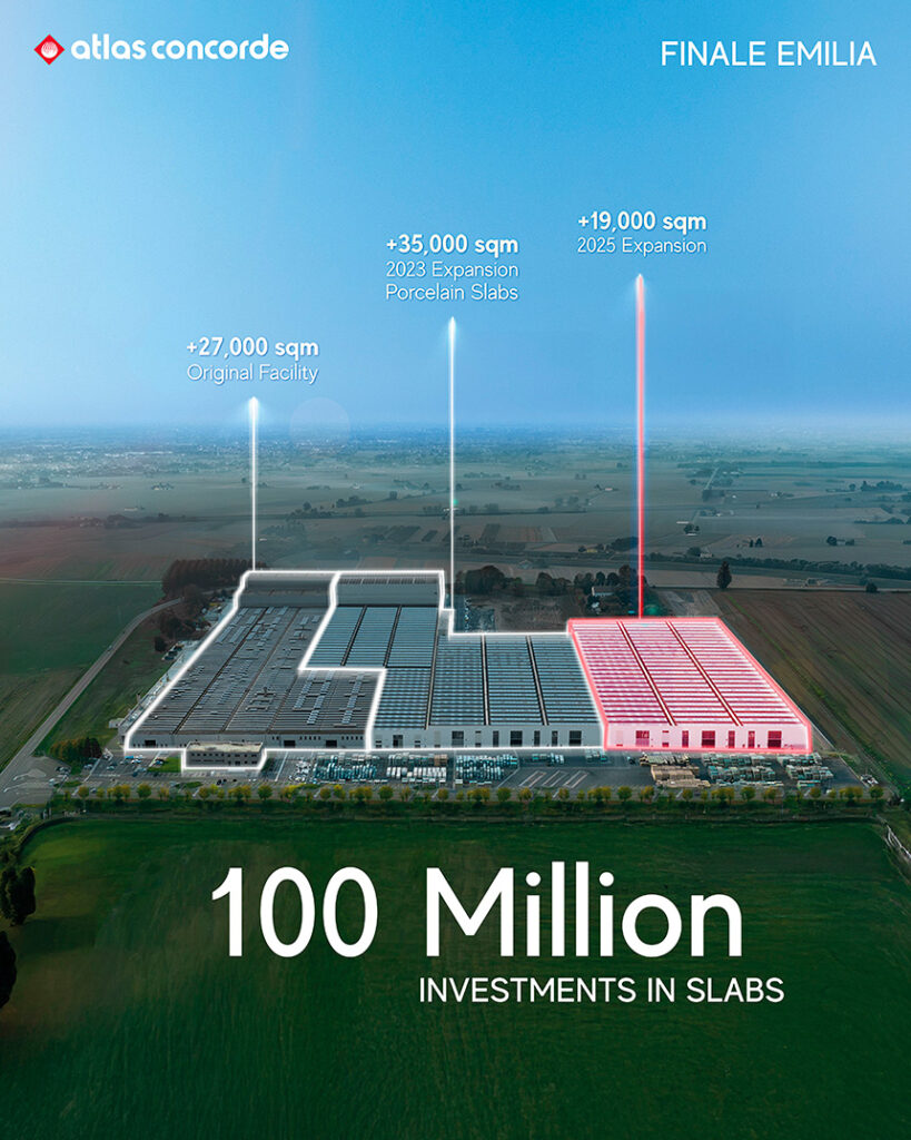 Se prevé que a finales de 2025 se complete en las instalaciones de Finale Emilia la duplicación de la capacidad de producción de placas de gres porcelánico. A esta ampliación le seguirá, durante el próximo año, un nuevo almacén logístico integrado en la planta, que ocupará una extensión de 19.000 m².