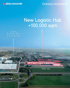 Por otro lado, en Fiorano Modenese se creará un nuevo centro logístico destinado a las baldosas de gres porcelánico. Con una superficie de 100.000 m², el centro acogerá un almacén logístico altamente automatizado y digitalizado diseñado para soportar la duplicación de la capacidad de producción que ha anunciado Atlas Concorde.