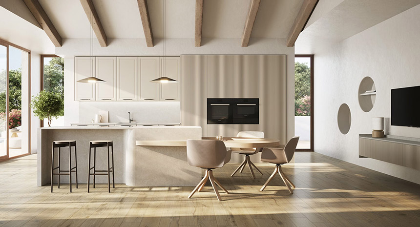 El resultado son cocinas que se sienten “vivas”, menos técnicas y mucho más agradables para pasar tiempo en ellas.