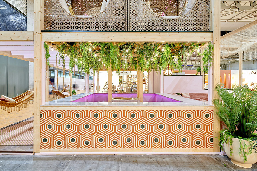 Asimismo, las principales “Concept Rooms” presentadas en interihotel Barcelona incorporaban materiales de Cosentino. Es el caso del proyecto “Nomad’s Concept Terrace”, diseñado por el estudio PhiBa Architecture para Medplaya Hotels, donde destacaba una llamativa barra cuadrada en Silestone Riviere Rose; y del proyecto “Mindful Explorer”, desarrollado por ILV para Mercer Hotels, que incluía un escritorio y un mueble de lavabo elaborados en cuarcita Taj Mahal de Sensa.