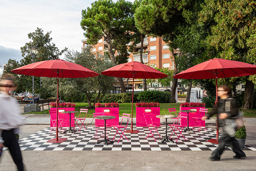 Por otro lado, en la terraza exterior, los sobres de las mesas se confeccionaron en Alisia, una piedra natural de su gama premium de cuarcitas y granitos exóticos, Terra, diferenciable por su durabilidad y belleza, gracias a la composición equilibrada de sus minerales, que encaja perfectamente con la estética del conjunto.
