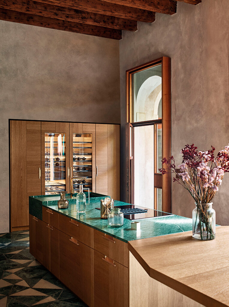 Cesar by Nero presenta Intarsio Art & Order, una cocina de diseño único que combina el mármol Verde Guatemala con el roble Rovere Mediterraneo Intarsio. Diseñada por Garcia Cumini, esta propuesta destaca por su equilibrio entre elegancia, funcionalidad y dinamismo arquitectónico, donde la madera y el mármol dialogan creando un espacio sofisticado y contemporáneo.