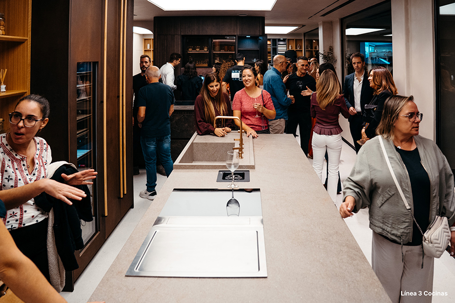 El evento contó con la presencia de más de un centenar de personas entre profesionales del sector y clientes finales. En este sentido, a la reinauguración de Origen Ciempozuelos asistieron miembros de la directiva de Casa Decor, ya que, precisamente la pieza central del showroom es la cocina azul que Línea3 presentó para Casa Decor 2024. También hubo representantes de las firmas Bora, Rekker, Trae, Inalco, Siemens, Cosentino, Elica, Kitchenprof o GEOH, además de influencers como Miriam Mimesis, el equipo de Transforma, o los Hermanos García