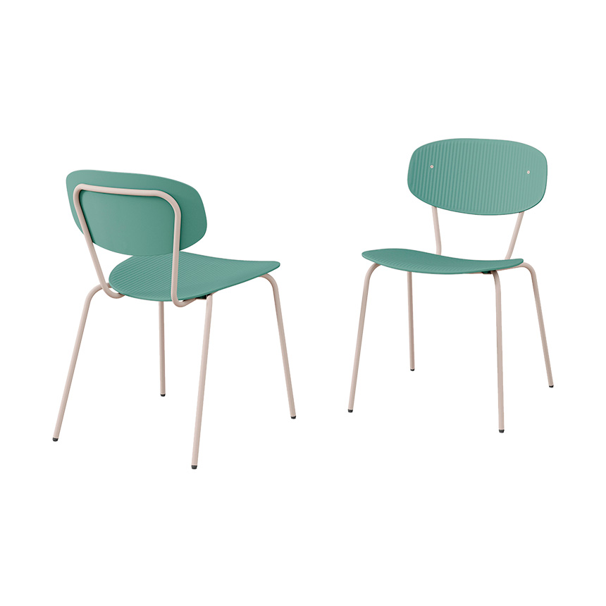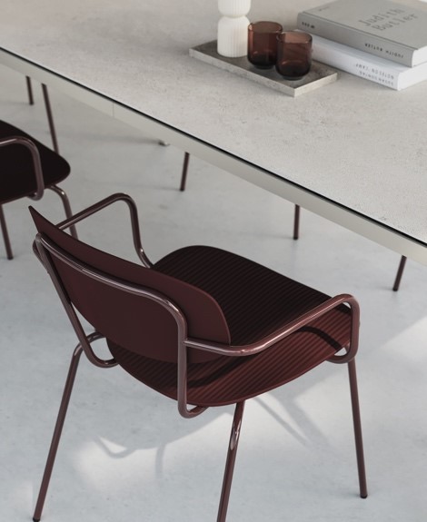 Inspirada en la silueta humana, Vairea destaca por un lenguaje formal suave y orgánico, con líneas sinuosas que aportan una sensación de confort tanto visual como ergonómico. La colección se presenta en distintas configuraciones, con o sin brazos, y ofrece la posibilidad de incorporar fundas tapizadas, permitiendo transformar el asiento de plástico en una versión tapizada según las necesidades del proyecto. La personalización juega un papel clave, con una paleta de 12 colores para los componentes plásticos y hasta 34 acabados para la estructura metálica, ampliando las opciones de adaptación a entornos diversos.