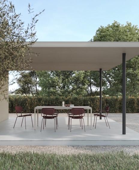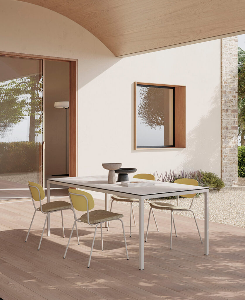 El diseño logra un equilibrio preciso entre ligereza visual y resistencia estructural. Su sólida base de acero inoxidable permite un apilado eficiente, lo que convierte a Vairea en una solución práctica y funcional. Gracias a su estética contemporánea y su carácter ergonómico, la silla se integra con naturalidad en una amplia variedad de espacios, desde exteriores como terrazas y jardines hasta interiores residenciales, oficinas o proyectos contract.
