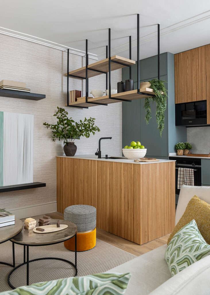 La coherencia material y cromática contribuye a reforzar la sensación de orden y amplitud, aspectos esenciales en el diseño de espacios reducidos. Cada elección responde a un criterio funcional y estético, demostrando que optimizar una vivienda de 35 m² no implica renunciar al diseño ni a la calidad arquitectónica.