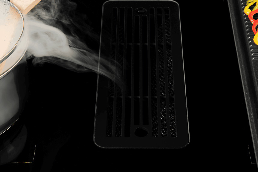 La placa de inducción integrada proporciona gran potencia y precisión, con funcionalidades avanzadas como Stop&Go, Booster, enlace Bridge, Clean Air, calentamiento rápido, temporizador, bloqueo de seguridad y detección inteligente de recipiente.