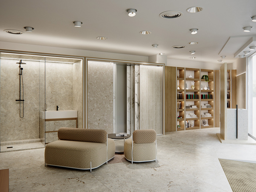 De forma complementaria al formato “City” este modelo de instalaciones, también destinado a situarse en el centro de las ciudades, mezcla las funciones de showroom de producto, y lugar abierto de atención y trabajo tanto para la red comercial de Cosentino como para todos los clientes de su cadena de valor, incluido el usuario final.