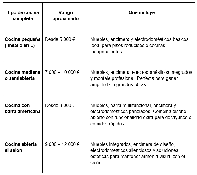 Una cocina completa es mucho más que un conjunto de muebles. Es un proyecto integral que combina mobiliario, encimera, electrodomésticos y diseño personalizado, adaptado al espacio y las necesidades de cada usuario.