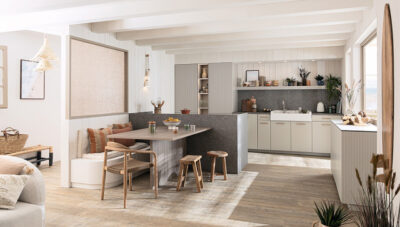 Igualmente, el acabado rayado en tonos intensos de la puerta Tirol añade profundidad y una experiencia visual y táctil original, dotando al conjunto de personalidad y carácter. “Esta puerta encarna un lujo discreto y clásico, permitiendo que la cocina mantenga su elegancia a lo largo del tiempo”, dice Recio. En la misma línea, la resistencia y durabilidad de la madera de nogal aseguran que el estilo de la puerta Tirol se conserve impecable durante años.