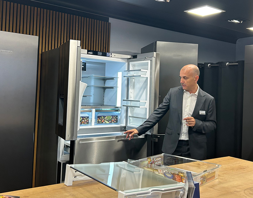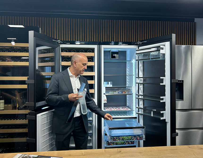 El directivo también recordó que los frigoríficos son los electrodomésticos que más energía consumen y destacó que los nuevos modelos de Liebherr consumen la mitad que un A de hace una década. Respecto al diseño, defendió el concepto de «calidad tangible»: «Cuando coges la puerta de un Liebherr notas el peso, la precisión, los remaches invisibles. Son detalles pequeños que reflejan la filosofía alemana de calidad real«.