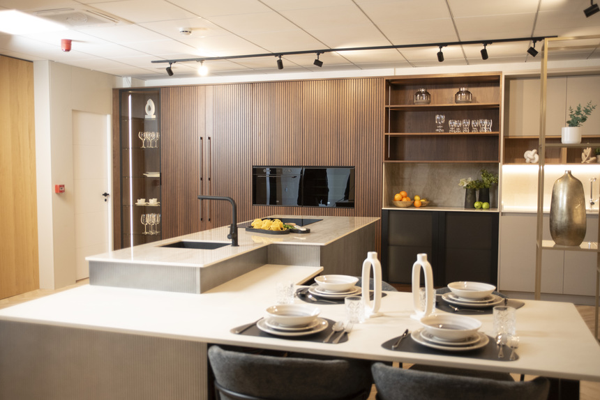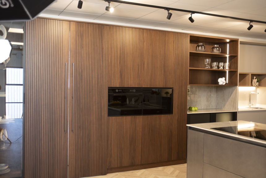 El showroom ha sido concebido como punto de encuentro del sector: un espacio donde los profesionales experimenten y puedan comparar tipologías, tocar materiales, evaluar sistemas de apertura y almacenaje, y presenciar cómo la tecnología se integra sin comprometer la estética. Se trata de un proceso integral donde los visitantes pueden conocer el diseño, la producción y la exposición.