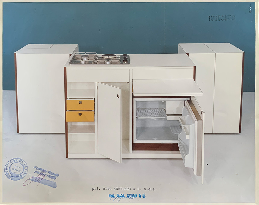 Uno de los momentos decisivos llegó en 1972 con “Spazio Vivo”, diseñado por Virgilio Forchiassin, una de las primeras cocinas completamente modulares. El proyecto fue expuesto en el MoMA de Nueva York y pasó a formar parte de su colección permanente, consolidando el reconocimiento internacional de la marca.