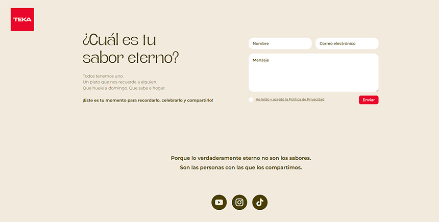 Con el objetivo de ampliar el alcance del mensaje, Teka incorpora a la campaña a distintos influencers, que compartirán con sus comunidades cuál es su propio sabor eterno: ese plato, aroma o receta que los conecta con su trayectoria personal. A través de sus perfiles sociales, animarán también a reflexionar sobre los recuerdos gastronómicos propios y a identificar a las personas que los hacen especiales, extendiendo la participación más allá de las piezas originales.