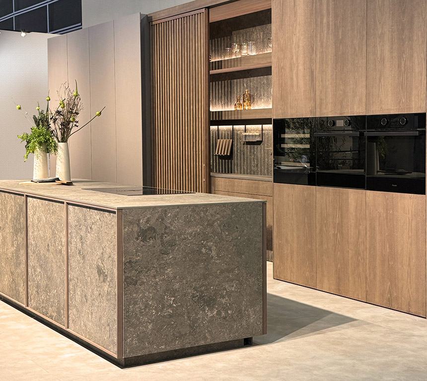 Los electrodomésticos integrados cobran protagonismo aportando una estética más limpia y ordenada al ambiente. Además, soluciones como campanas extractoras integradas en la encimera o en la placa consolidan el concepto de «cocina invisible».