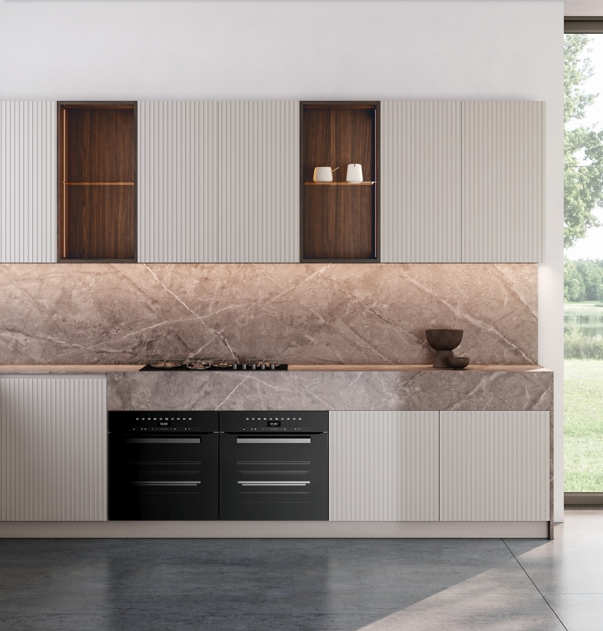 La segunda tendencia es la capacidad de personalizar la cocina, muy presente también desde siempre en la filosofía de Arredo3. Esta tendencia se traduce en sistemas modulares y flexibles, una amplia selección de materiales y acabados, y la capacidad de crear composiciones personalizadas que reflejen cada estilo de vida.